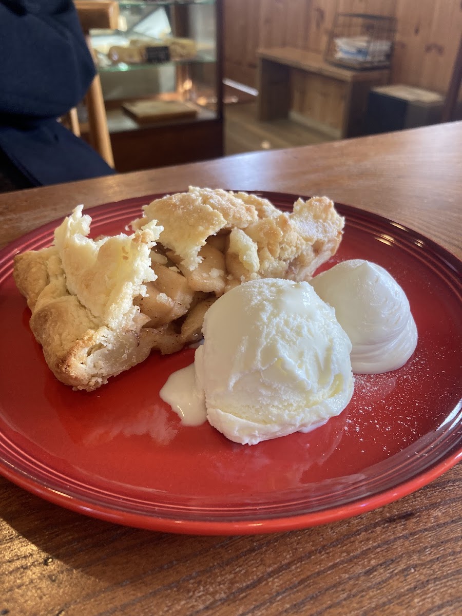 For those who fancy a heartier dessert, the American apple pie receives high marks for its crisp, fresh apples complemented by just the right amount of cinnamon. As noted by another satisfied customer, the pie is a generous size and is best enjoyed in-house, where you can savor it topped with an inviting scoop of ice cream and light whipped cream.